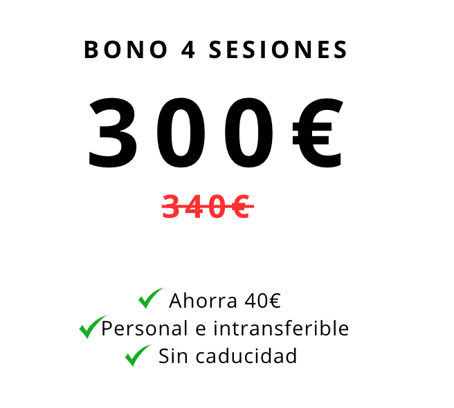 y para agendar otra sesión tendrás que volver a pagarla 48h antes de la cita, en caso del bono se descontará una sesión.